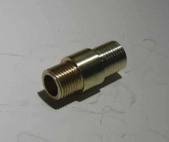 Una tapa frontal se trabaja a máquina de latón. La parte que entra en el tubo tiene algunos surcos bajos para permitir mejorar la adherencia de la epoxi lo que se utilizará para fijar en su lugar. En este caso, una 1/8" BSP rosca macho también se corta en la parte delantera para permitir la instalación de los accesorios más adelante.