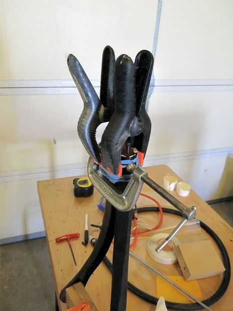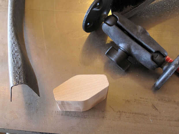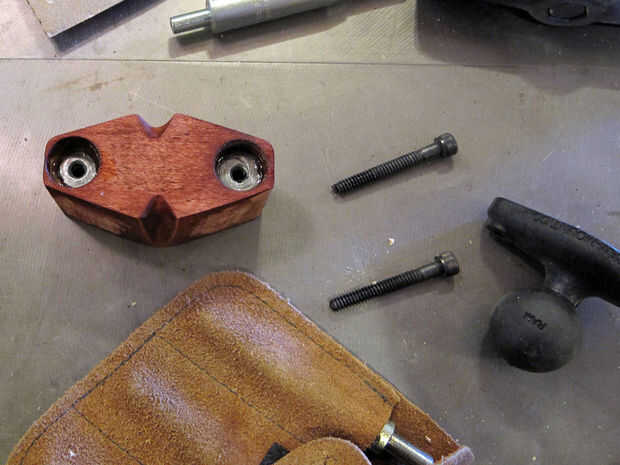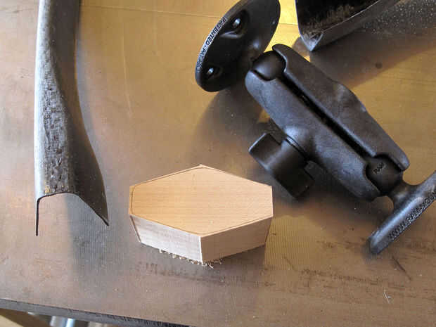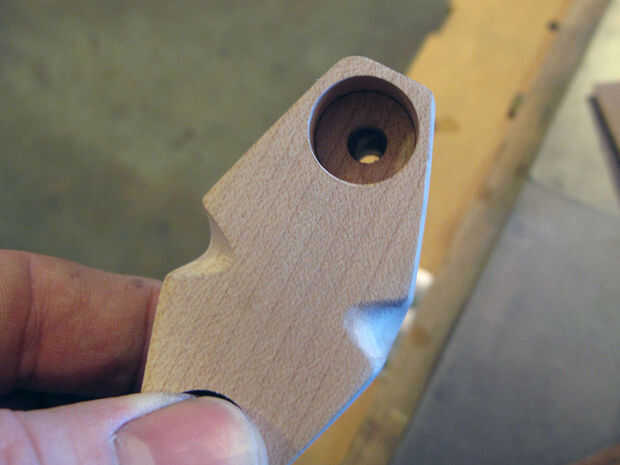 Aligning the arms took a little thought.  Necesitaba construir una plantilla que pudiera sostener los brazos en su orientación final y el espaciado para que no estarían bajo flexión o torsión tensiones (debido a la desalineación) al montaje final.  Hice una plantilla de MDF - y el "agujero" para el eje principal en el lugar de perforación para comprobar que es recto y paralelo.