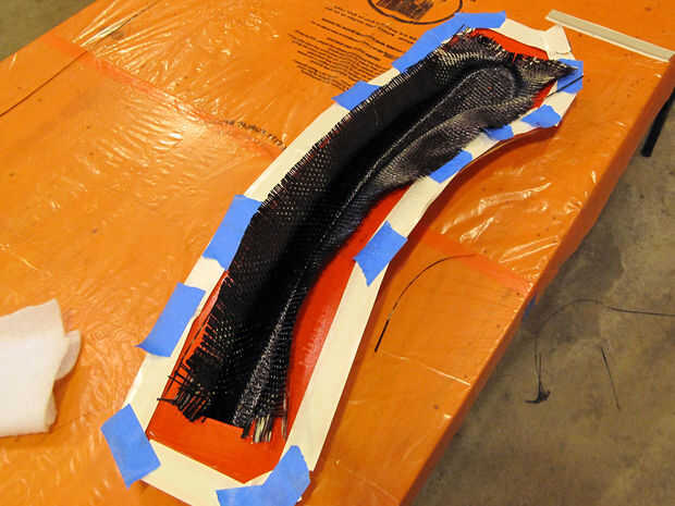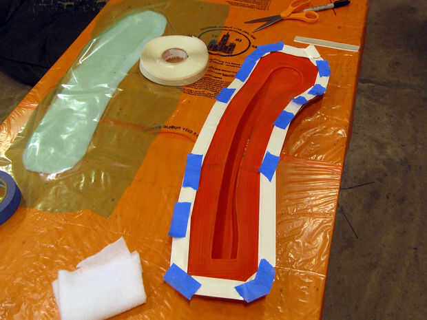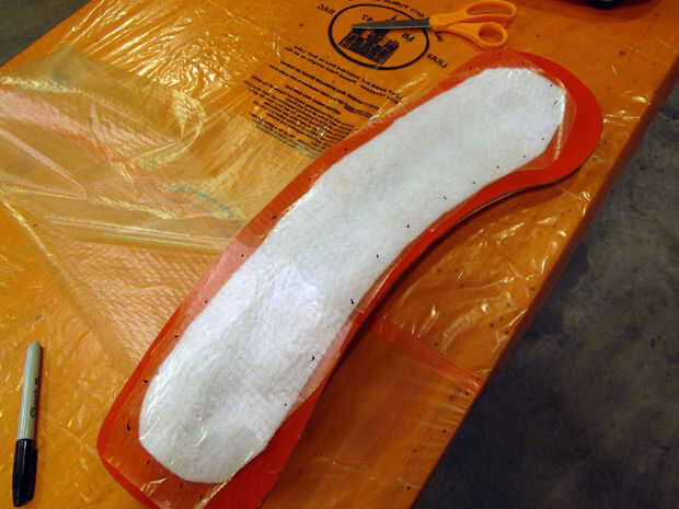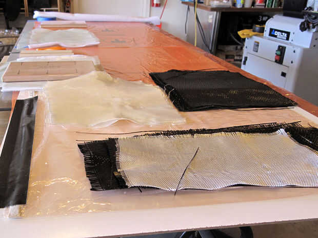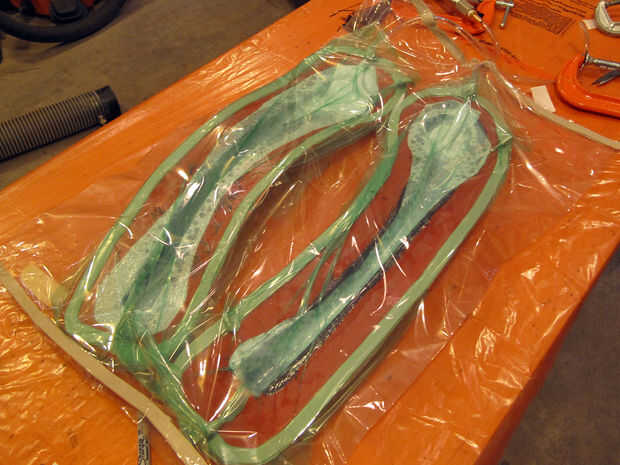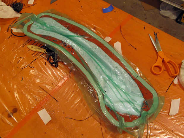 Empaquetamiento del vacío es una operación un poco frenética - así que quieres tener todo dispuesto antes de pasar adelante: tela, resina, respiradero, peel-ply, material ensacado, cinta selladora, mangueras, etc, etc.. Usted también querrá todo cortado a la medida antes de tiempo - el trabajo de preparación más haces, más rápido y más suave que el funcionamiento irá por usted y la menor posibilidad de estropear Algunos bastante cara tela y resina.