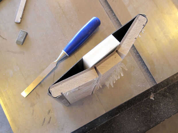 The tablet holder, I decided, would be built using "sacrificial" plugs - both to try a new method and for expediency.  En este caso, el PLAN es destruir los tapones al sacarlos.  Obviamente, se trata de una técnica adecuada para un prototipo, pero probablemente no el mejor para la producción puesto que creará un montón de trabajo en el back-end con los layups de limpieza (como se verá pronto).