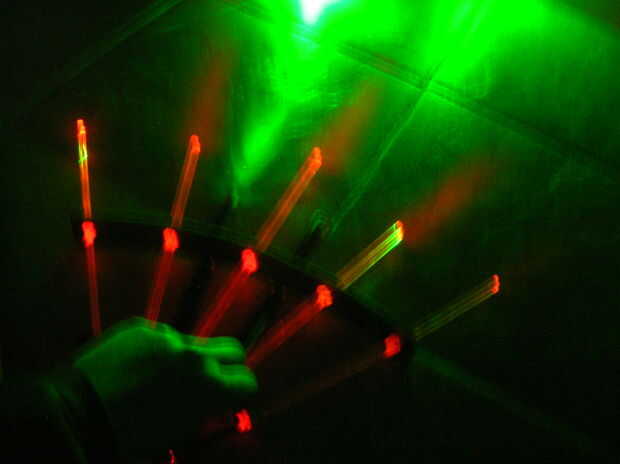 Tengo un video por debajo de la parte de fibra óptica de trabajo, pero mi cámara no es buena dar el efecto completo, especialmente los láseres. Tendrás que créeme que son impresionantes.