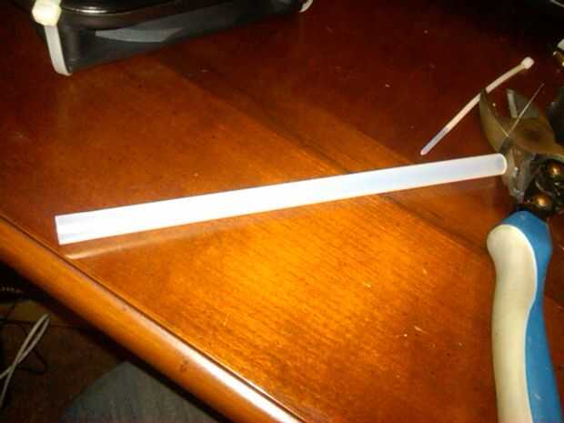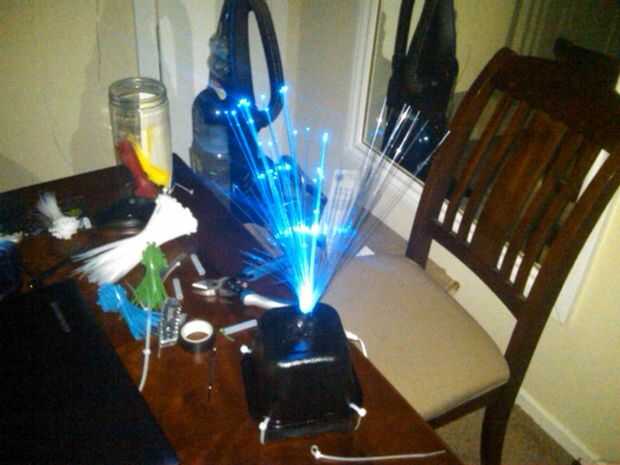 Cortar todos los restos de los lazos del cierre relámpago y usar cinta aislante para asegurar la fibra ópticos filamentos juntos en la parte superior de la Asamblea. Tomar la paja y cortado en diferentes longitudes. Utilizar los pedazos de paja para separar grupos de los filamentos para que tenga un patrón único. Par de ideas sería como un árbol o fuegos artificiales explosión, una rosa. Cielo es el límite.