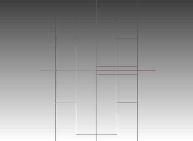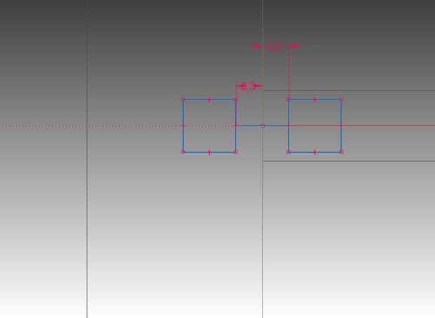 Medí la distancia entre los electrodos de LED de 0,7 mm, así que añadido algunas líneas de 0,3 mm a cada lado del punto de centro para que el LED podría deslizar hasta la resina y configurar perfectamente. El corte outs para los electrodos fueron hechos para ser cuadrados de 0,6 mm, más que suficiente espacio para los cables en. Luego quité las líneas para que solía Alinee los orificios y procedió a cortar el resto a través de la parte.