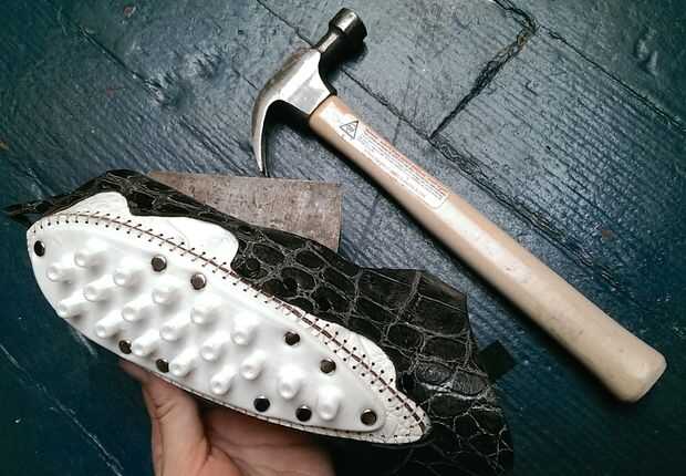 Luego tomé este conjunto y remachada hasta el cuero, primero enhebrar el cable de LED a través del agujero para el conector y el cable vinieron a través en el interior de la caja (la imagen que ilustra este aquí es de otro proyecto, pero usted consigue la idea).