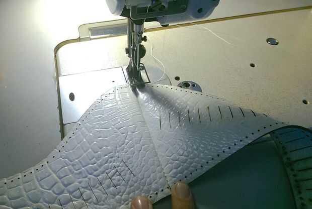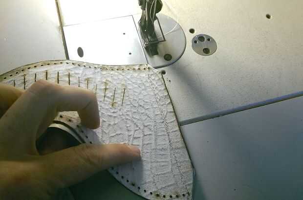 Yo había elaborado mano coser los agujeros en la mayoría de los cinturones, pero había algunas piezas que necesitaba para coser a mano, que lo hice en una pie pie máquina industrial... una increíble máquina que cose a través de cualquier cosa!