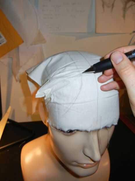 Pues yo utilizaba muselina para cubrir la sección de centro de la cabeza que va a ser la 'tapa' de cuero que sostiene el micro controlador y las baterías.