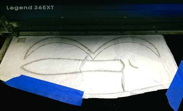 Entonces láser cortar mi piel blanca. (Si vas a hacer el traje entero, sería mejor esperar hasta que también han creado los patrones para el pecho y las piernas, y luego les corte láser todos juntos.)