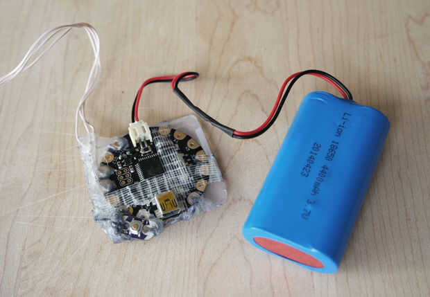 laboratorio de diseño de Polymath hizo una "falda de estrellas" con tubo luminoso de fibra óptica.http://www.polymathdesignlab.com/etextiles/starskirt/Sus instrucciones sugieren conectar LEDs al extremo del tubo luminoso de fibra óptica mediante
