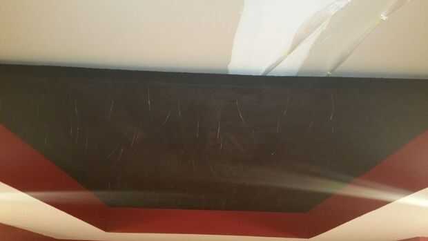 - Apriete los tornillos directamente en el techo de yeso. No tienes que preocuparse por golpear clavos ni nada, teniendo en cuenta estos paneles ligeros cómo son. Sin embargo, no fijar estos paneles completamente contra el techo. Usted querrá dejar aproximadamente un 1/2 espacio entre el techo y el panel. Esto le permitirá espacio para tus paquetes de filamento a correr detrás del panel.