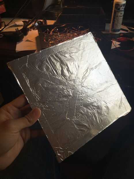 Pegue una hoja de papel de aluminio, con la cara reflectante de la hoja hacia afuera, al interior de la parte posterior del marco con cinta de doble cara. Corte una pequeña muesca en el borde inferior para permitir la salida de cable. El papel de aluminio asegura que la luz es rom correctamente reflejada los LEDs de la fibra óptica. Puede envolver el cable de un par de veces alrededor de un clavo o una tachuela cerca del orificio para evitar que tira del cable de desplazar cualquier LED.