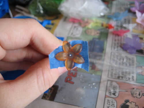Poner una gota de la resina de 1 minutos en el centro de la flor para mantener el cable en su lugar.