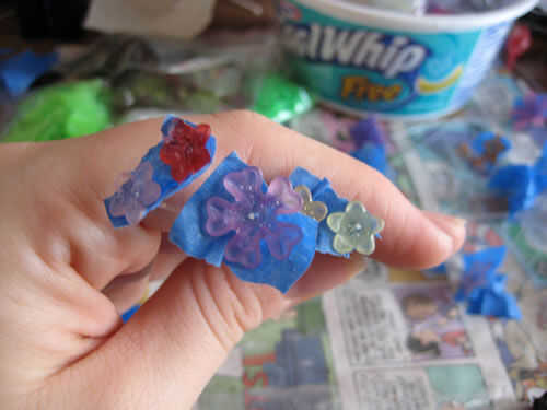 Coloque pequeños trozos de cinta adhesiva sobre la parte posterior de cada flor.