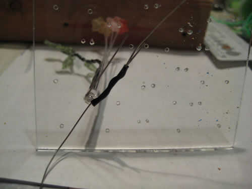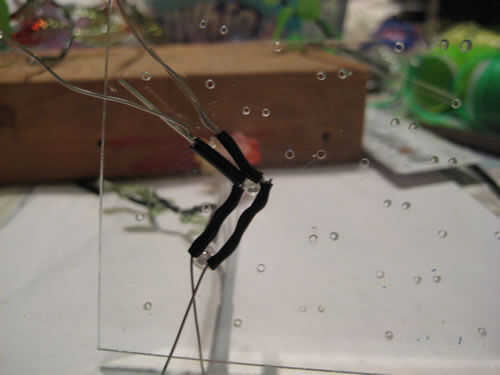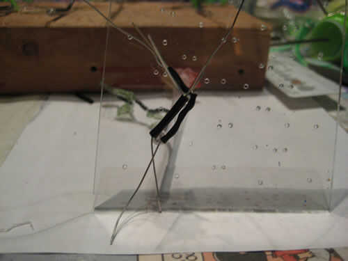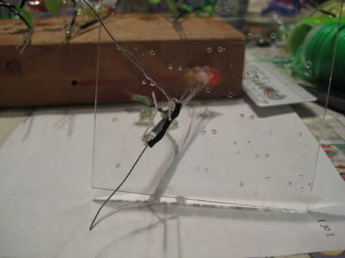 Dejando una cola corta, girar uno de ellos alrededor del cable positivo del LED en el panel. Cortar un trozo del larga tubería del encogimiento del negro lo suficiente como para llegar desde allí hasta el siguiente LED (más un poco, porque se reducirá a lo largo de la longitud del alambre así.) Enrosque el tubo en y reducirlo. Lo mismo para el lado negativo. Ajuste de cualquier extra LED cable. Añadir otro LED y mantener el cableado de la misma manera. Conecte todos sus LEDS cuidando realmente que todos positivos conectados a los positivos y negativos conectados a negativos.