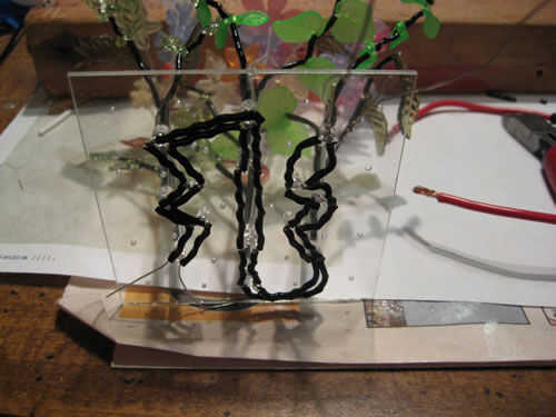 Empuje las piezas de césped a través de sus orificios, doble el alambre en la parte posterior y asegúrelo con epoxi un poco más.
