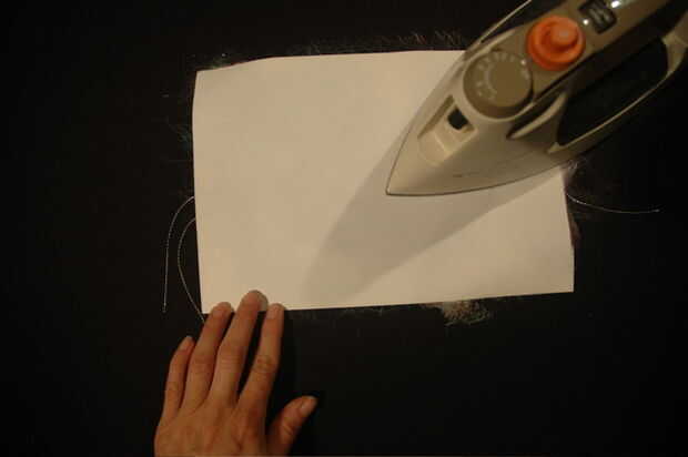 un método para fijar hilo conductor a la tela.¿Quieres más videos de eTextile How-to DIY eTextile, tutoriales y proyectos?Luego visitaremos el eTextile Lounge!Paso 1: Coloque una pieza de tela parte (moda) hacia abajo en la tabla de planchado.Paso 2: