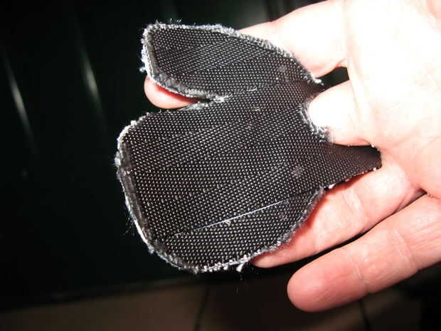 He usado esto varias veces. Es irregular alrededor de los bordes como se ve, pero brotes finos. La cinta es de una silla para niños desechados, creo yo, y es muy resbaladizo a lo largo pero no transversalmente. (Podría ayudar con el lanzamiento de alguna manera).