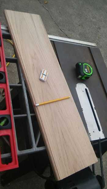 hoy estoy usando un viejo tablón de usar y tirar/reclamado que encontré en un sitio de construcción. Creo que es pino... y tal vez se utilizó para enmarcar un manto. tiene un borde biselado que corte.