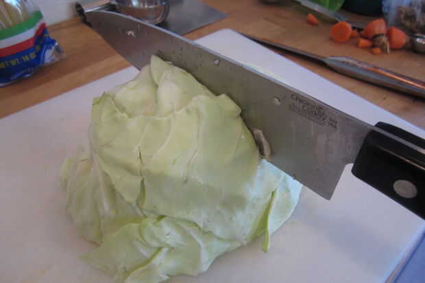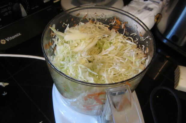 Si no, la manera más fácil de usar: el procesador de alimentos. Con el accesorio de la cuchilla, ralle el repollo y coloque en un tazón para siempre hasta que lo necesite.