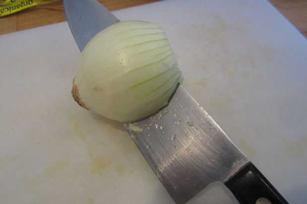 De cebolla: cortar cebollas en pulgadas segmentos largo y fino.