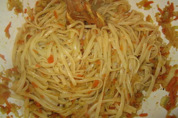 Por último, vierta la mezcla de salsa de soja en verduras y revuelva hasta combinar. Luego Vierta la cosa todo verdura los fideos preparados, mezcla hasta combinar. Si lo desea, puede verter salsa de soja más para más sabor.