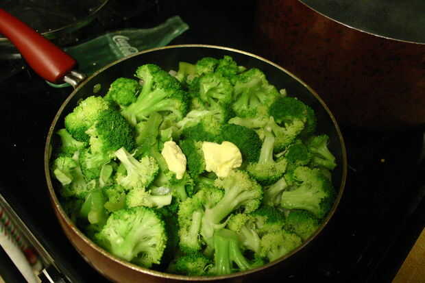 Si estás en una contracción del tiempo, tiro la tapa sobre la sartén para que el brócoli cocinará más rápido, esto será también hacerlo más suave. Así que si te gustaría tener ese "crunch" extra para el brócoli, mantenga la tapa.