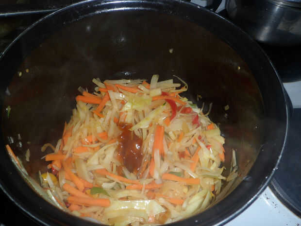 Ingredients:1 paquete de fideos de KokaCarne picadaSetaVerduras mixtasHierbas y especias3 cucharadas de salsa de sojaSalsa de tomate (opcional / 'arma secreta')PASO 1:Saltear la carne picada.PASO 2:Espera de la carne para que se doren, hervir 2 tazas