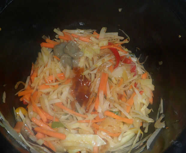 -Añadir una cucharada de salsa de tomate, salsa de soja y salsa de Chile y darle una mezcla.