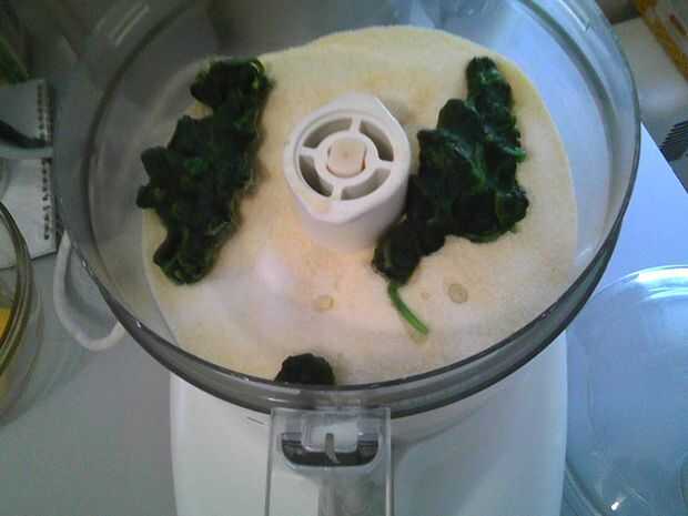 A través de la sesión de alimentación del procesador, agregar el huevo, las yemas de huevo y aceite. Retire la mezcla del procesador y lugar en tazón grande.