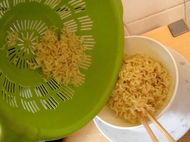 hace años alquilé un apartamento. Caminando más allá del porche delantero de un vecino un día, me di cuenta de una botella de agua plástica que era diferente de cualquier otra botella de agua que había visto porque estaba lleno de fideos Ramen! Uno d