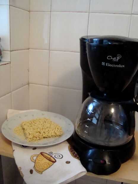 insólito, sí pero deli y velocidad. : D En este momento no tengo una estufa en su casa. Por lo tanto utilizamos la cafetera para cocinar. : D Realmente funciona. ¡ Pruébalo!