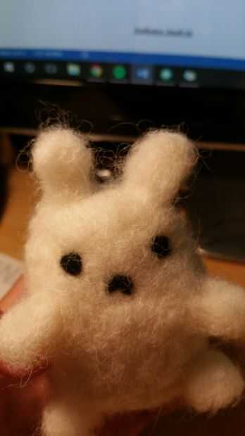 Hice un Pío de fieltro de aguja. Y lo que me inspiró para hacer un Pío es he ido a un montón de tiendas y he visto mucho peep de juguetes de peluche y yo quería hacer uno de mi propia. Sé como a fieltro de la aguja así que comencé a hacer un conejito
