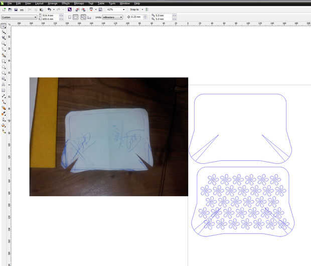 Los recortes decorativos son formas de flor solo poco copié y pegué. A continuación usted puede recortar las piezas, dos para el interior en un color y dos para el exterior en otro color. Utilizo CorelDraw para diseño gráfico.
