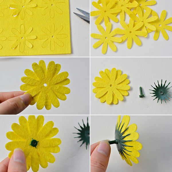 4 Repita los pasos anteriores y terminar las flores fieltro colores de descanso;