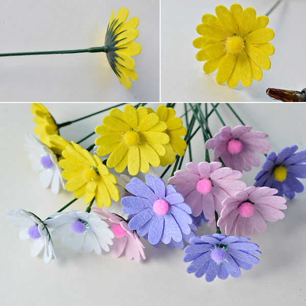 5 pegar la bola de fieltro en el centro de la flor como bud uno por uno;