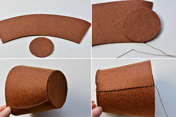 2 º, hilo de rosca hilo de algodón de café a través de una aguja, luego coser el borde de la tira a lo largo del círculo;