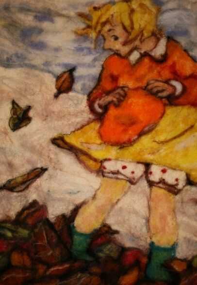 arrancar un pequeño penacho de fibras de sus tops de lana. Pone en pre-fieltro