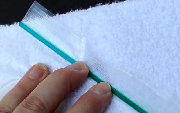 Exprima el exceso de agua (dejar aproximadamente una cucharada en la bolsa) y sello. Asegúrese de que no hay fibras están atrapadas en la "cremallera".