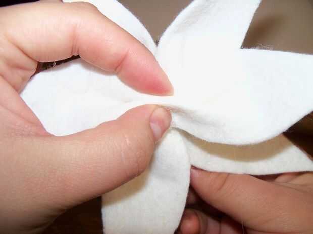 Paso 1: Lo que usted necesita Fieltro:• 5 óvalos• 6 círculos un poco más pequeños• 2 estrellas 1 más grande que el otro• 1 círculo para la base• 1 pequeño círculo para el centro(Ver en foto)•Needle e hiloPaso 2: Hilo todos los 5 de los óvalos en la r