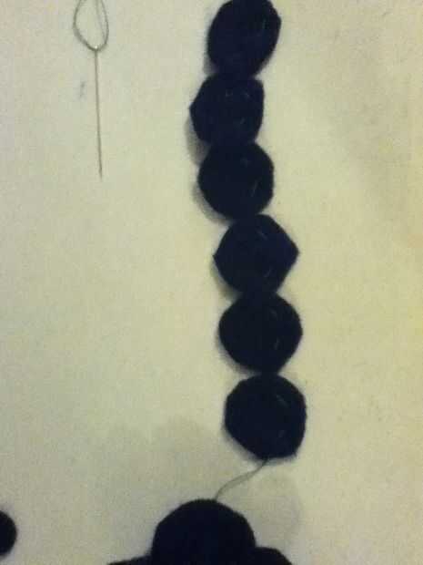 Ahora coser los 6 círculos del mismo modo con una brecha más pequeña en el centro que antes. Luego lo cose en la base en medio de los otros pétalos.