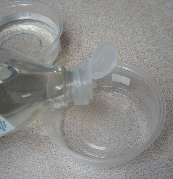 • Utilice el mismo dos contenedores al igual que en el paso anterior, uno para agua caliente-caliente jabonosa y otro para agua fría.