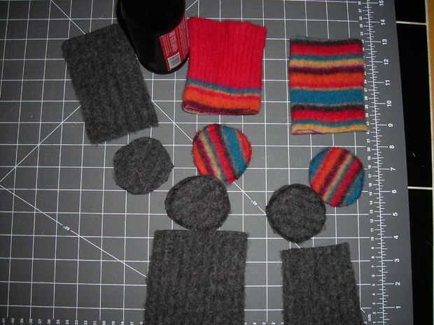 necesitaropa lana encogidatela de impresión de algodón para el forro (puede ser favorito viejo vestido o camisa)hierro en la entretela (30cm debería ser suficiente para pequeñas zapatillas)grandes botones de madera4 botones negros para los ojoshilo d