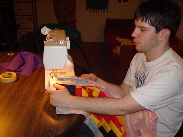 Debido a la naturaleza del diseño decidí darle pequeñas fronteras para hacer un quilt de pared grande o una pequeña colcha para un sofá o una cama. Para el bateo he utilizado una manta porque no quiero que sea muy grueso. Corte y acolchado de la espalda y el bateo usando la cosa en el método de zanja para lo del edredón. Terminé las fronteras envolviendo alrededor del forro y coser abajo en la parte delantera.
