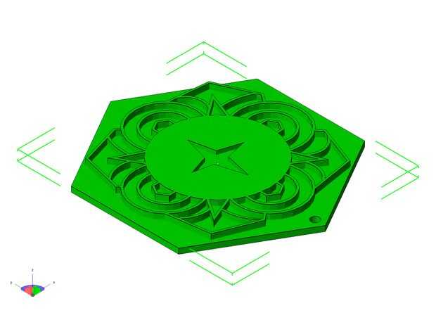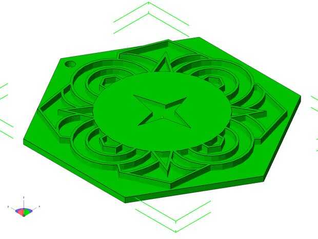 Para hacer este ornamento, empecé creando un hexágono en sketchup, haga clic en la herramienta hexágono y dibujo a mi tamaño deseado. Luego, empecé a experimentar para ver qué formas y diseños podría crear. Fueron algunas de las formas que utilicé en mi diseño, círculos, hexágonos y líneas. Una vez que esté satisfecho con mi diseño, seleccioné la herramienta empujar/tirar para hacer el diseño 3D. Luego puede tirar el diseño a la altura que usted desea.