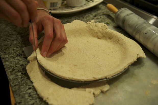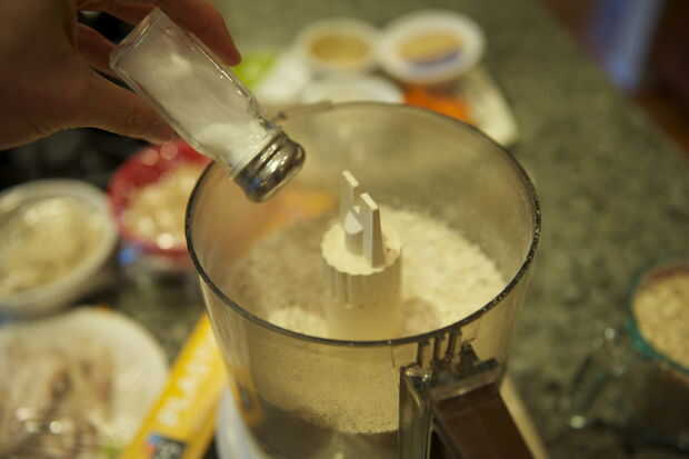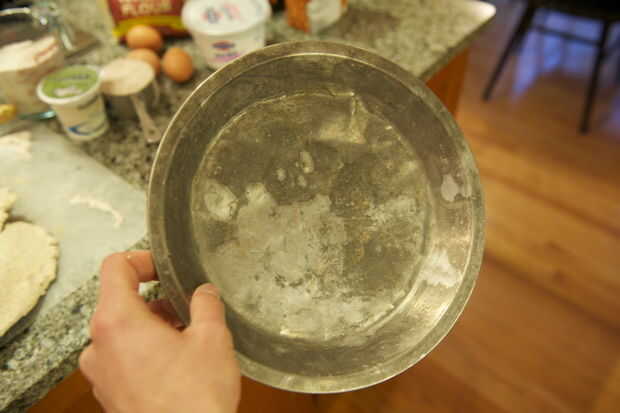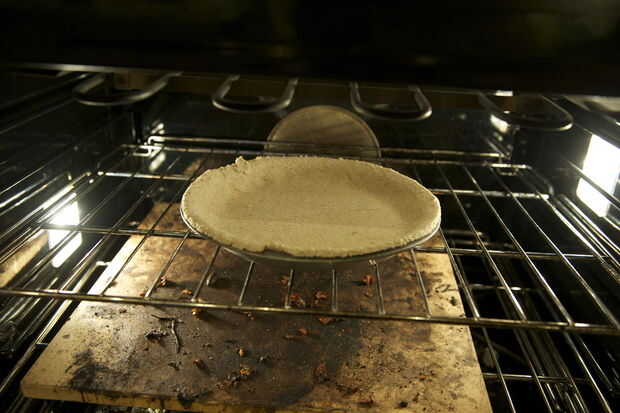 Tamizar juntos la flor y la sal y combinar con el yogur en un procesador de alimentos. Puede que necesite añadir yogur un poco más si la masa no la bola para arriba en el procesador de alimentos. Amasar la masa hasta que esté bien mezclado, entonces rodar hacia fuera en un círculo y presione en un molde de tarta oró con algún aerosol. Hornear durante 10 minutos a 350 grados para endurecer la corteza.