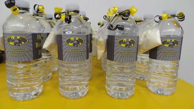 Imprimir las etiquetas de botella de agua en papel brillante, cortar y aplicar a las botellas de agua con cinta de doble cara.