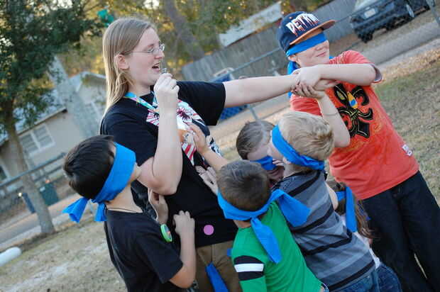 Cuando todos se reúnen en el centro y etiquetarte, consiguen avanzar hacia el siguiente juego.