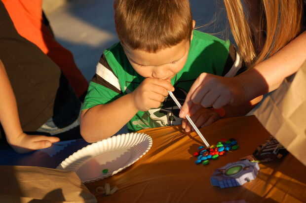 Jugador debe utilizar la paja para chupar m & ms y moverlos a la placa donde debe arreglar en una cara sonriente.