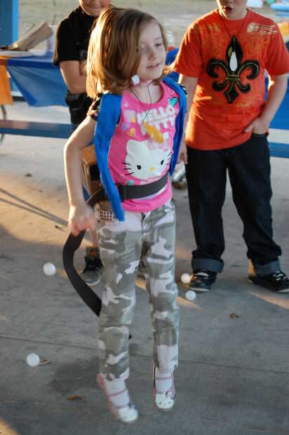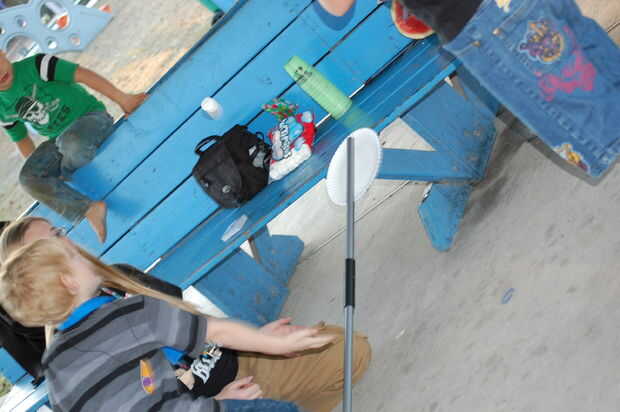 Jugador debe soltar el mango de la escoba que golpea la placa, catapultando el marshmellow en el aire, que luego debe tomar.