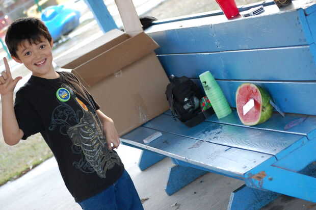 Jugador debe lanzar las tarjetas en el melón hasta que uno se pega en.
