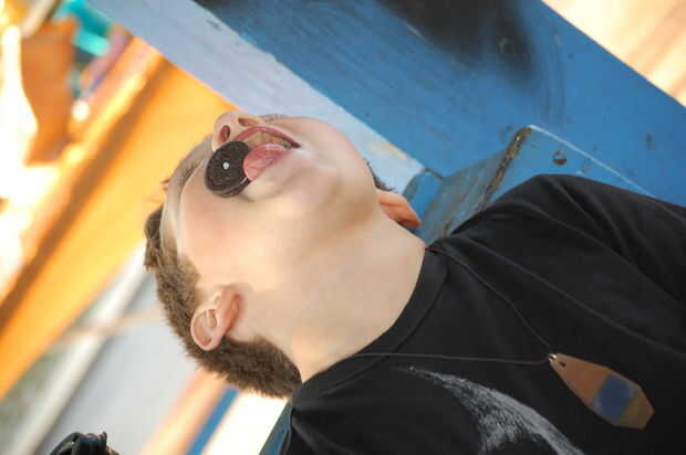 El juego es simple. Simplemente incline su cabeza hacia atrás y poner una galleta en la frente. Tratar de conseguir la galleta en la boca sin utilizar las manos. Debe utilizar los músculos faciales para realizar la tarea.